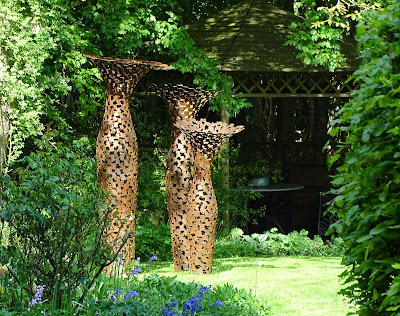 Nieuwe kunst in de tuin, van cortenstaal. Gemaakt door Peter Scheedler uit Ten Boer. Deze vazen blijven!